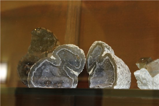 Owned by Steve and Deedie Golden of Grayson, the collection of fossils and other rare geologic artifacts are located in the display case in the lobby of City Hall, 2342 Oak Road.