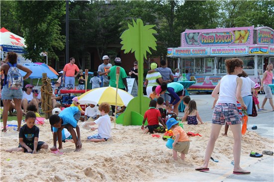 More than 70 tons of sand will cover Oak Road for visitors to play in. There will be a Mascot Parade around the Green, fun and games with DJ Lee, a rock wall, a bungee jump, inflatables, a trackless train, the Big Kahuna Water Slide and a 9-hole mini golf course. An all-day pass is $10. Individual tickets are also available.