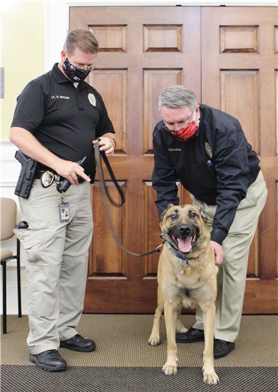 From left, Lt. David Matson and Chief Roy Whitehead with K-9 Officer Jax.