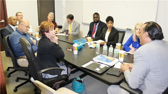 Standing from left: Lawrence Williams, owner, Gravity Indoor Trampoline Park; Melvin Everson, director of Business and Industry Training, Continuing Education, Gwinnett Technical College; Jeff Tweed, owner, Big Frog Custom T-Shirts and More of Snellville; Eric Van Otteren Snellville Economic Development Manager; Councilman Dave Emanuel; Barbara McClure, founder and chief executive officer of Snellville-based A Defined Image Med Spa; Karen Foote, owner, L.E.A.A.D.S; Debra Poirot, District director, Congressman Rob Woodall's office; Christopher Blocker, business services specialist, WorkSource Atlanta Regional Commission; Doug Adams, president Greater Eastside Chamber of Commerce and Adams Financial Management owner; and Bruce LeVell, Small Business Association's Office of Advocacy's Region 4 advocate.  Kneeling from left: Edward MacFarlane, owner FastSigns, and Joe Wilson, political activist.Standing from left: Lawrence Williams, owner, Gravity Indoor Trampoline Park; Melvin Everson, director of Business and Industry Training, Continuing Education, Gwinnett Technical College; Jeff Tweed, owner, Big Frog Custom T-Shirts and More of Snellville; Eric Van Otteren Snellville Economic Development Manager; Councilman Dave Emanuel; Barbara McClure, founder and chief executive officer of Snellville-based A Defined Image Med Spa; Karen Foote, owner, L.E.A.A.D.S; Debra Poirot, District director, Congressman Rob Woodall's office; Christopher Blocker, business services specialist, WorkSource Atlanta Regional Commission; Doug Adams, president Greater Eastside Chamber of Commerce and Adams Financial Management owner; and Bruce LeVell, Small Business Association's Office of Advocacy's Region 4 advocate.