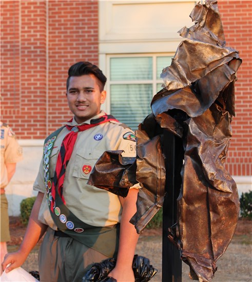 "I was 6 months old when the terrorist attacks of 9/11 occurred," Amin said, "My dad told me this was a sad day in the history of America. He told me that I watched the second tower go down while sitting on his lap. Ever since I became a Boy Scout and found out I have to do a service project for my Eagle rank, I wanted to build a 9/11 Memorial for those who died, those who served and those who carried on."