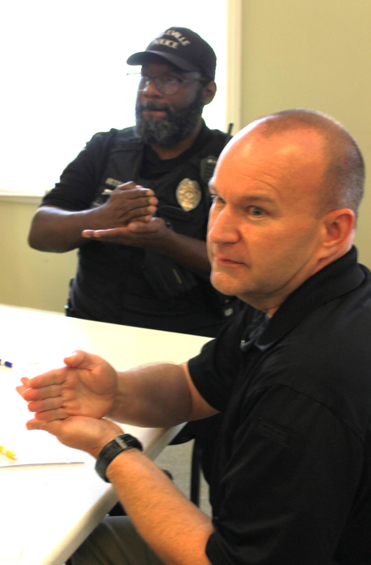Signs for words such as “license,” “insurance” and “help” were shown to the class participants – words that will be helpful to the officers and court personnel if they need to communicate with a deaf person.