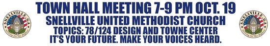 SNELLVILLE – Residents will have a chance to learn more about the upcoming intersection improvements at highways 78 and 124 and the results of a survey regarding the Towne Center at a Town Hall Meeting Oct. 19.